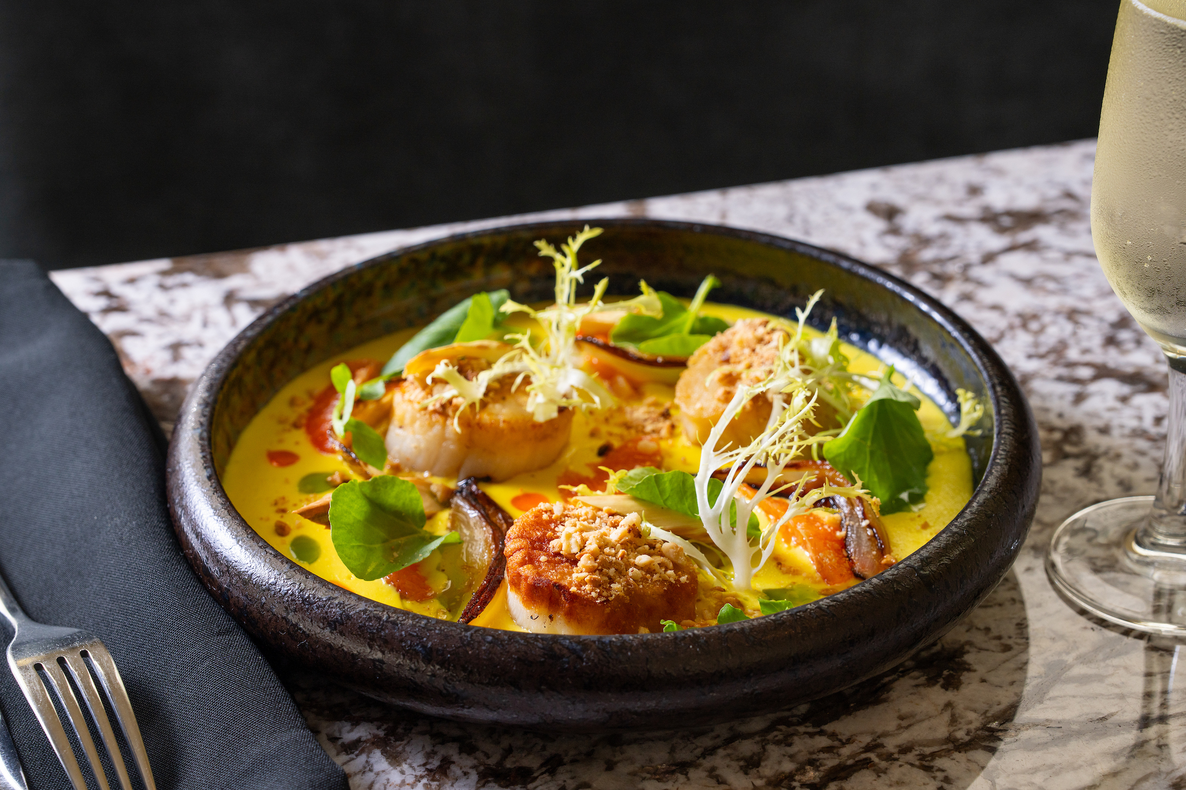 Perched above the city with glittering skyline views, Aperture is an elevated bar and lounge where LA’s energy meets effortless sophistication. Chef Armando Quiroz showcases a seasonal menu inspired by the city’s diverse neighborhoods and coastal bounty, featuring locally sourced ingredients, signature crudos, his renowned scallops, and a curated prime steak program with bold West Coast flair.