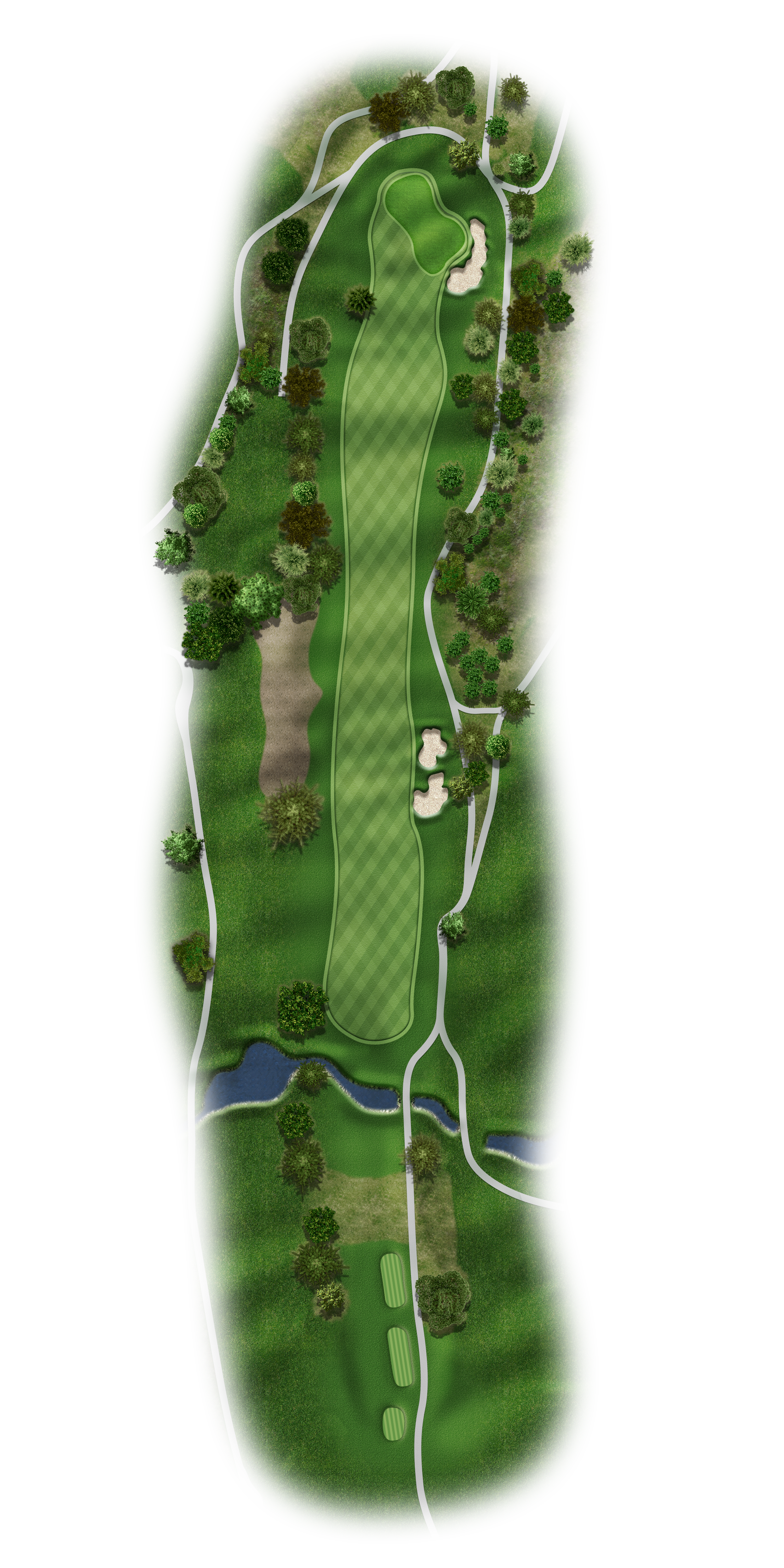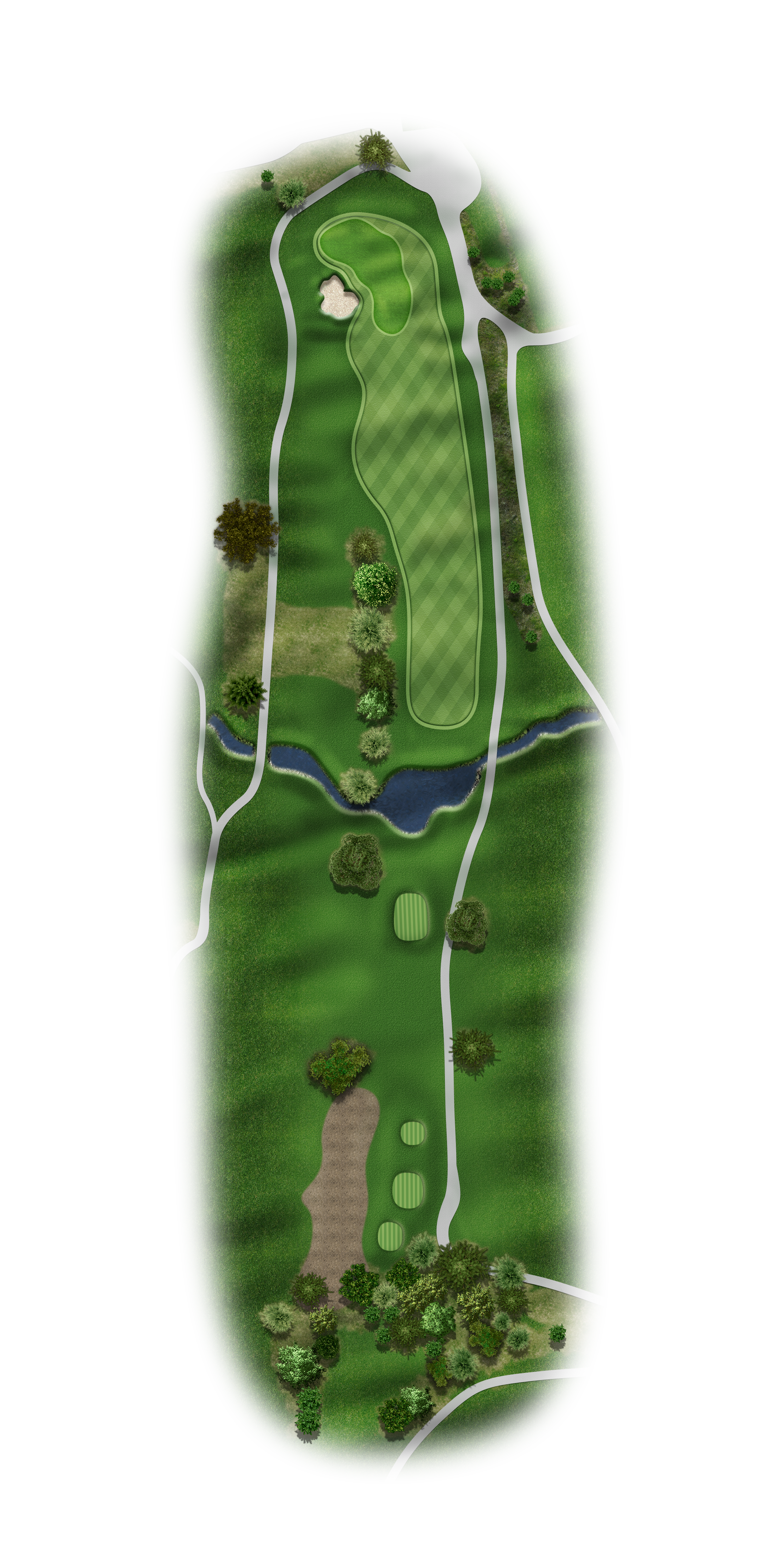 Aggressive and long tee shots with a driver from an elevated tee box puts players in the best possible position to attack the elevated green. Majority of the players will be hitting a blind second shot from a severe uphill fairway that prevents golfers a glimpse at the green. A small pond catches most missed shots that come up short and to the right of the green.