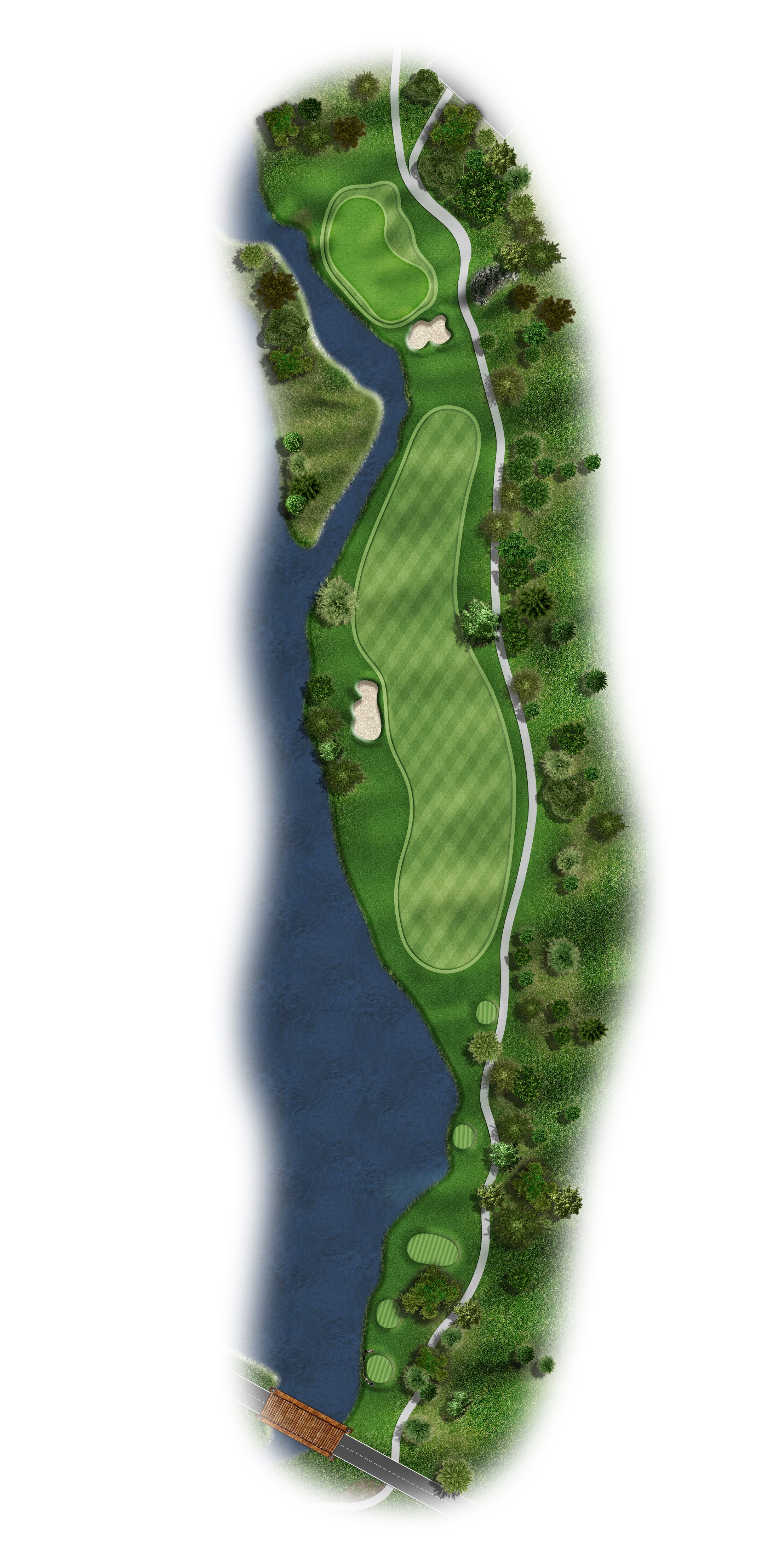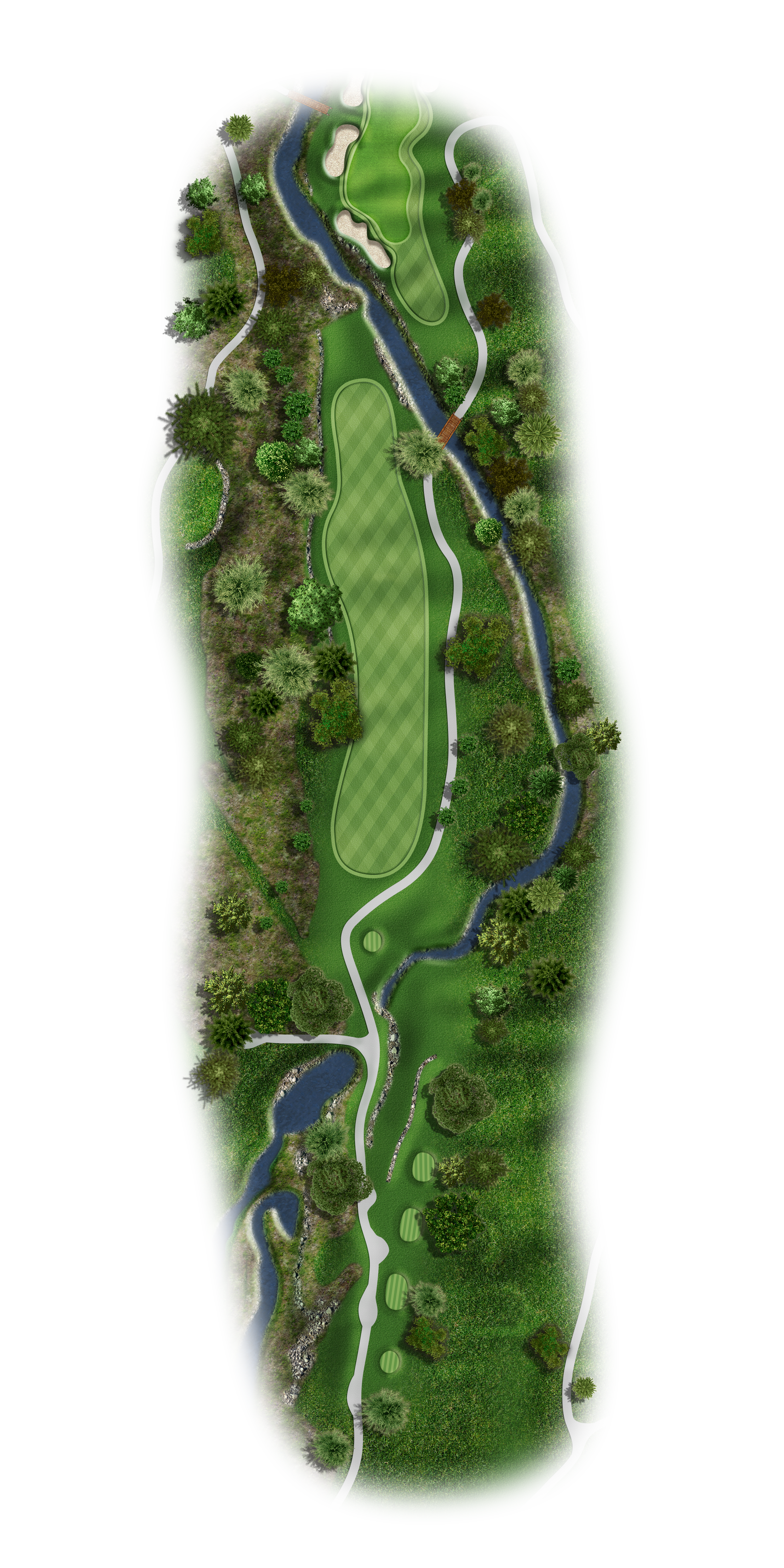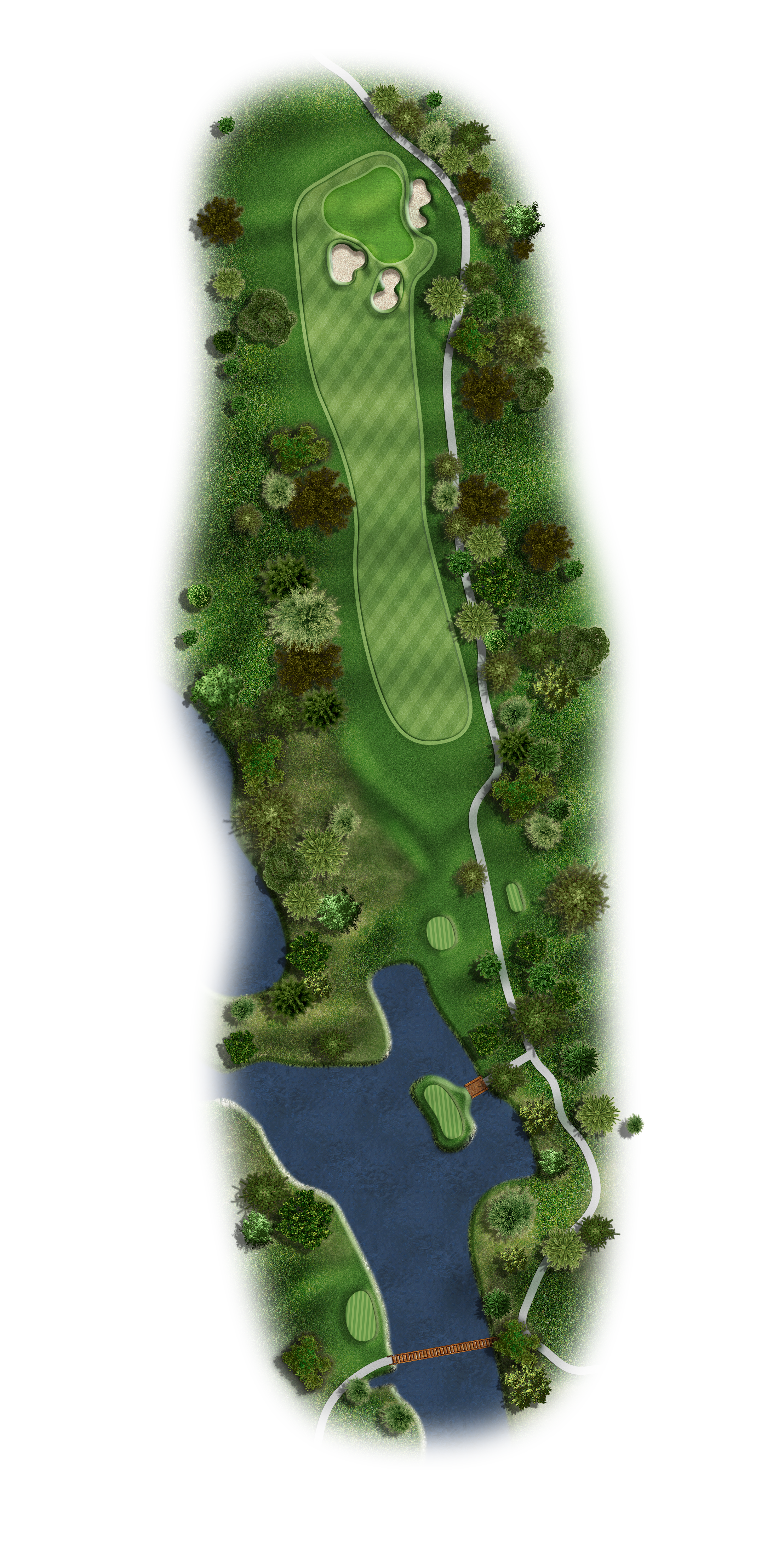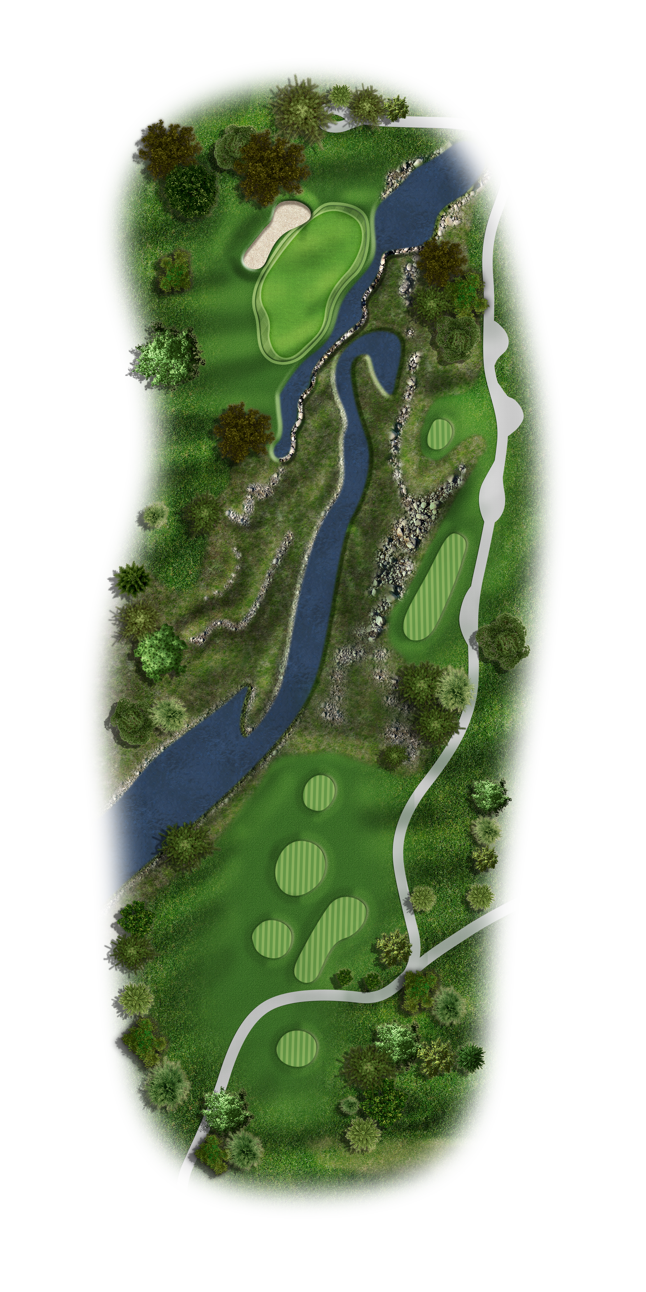 This Par 5 requires a drive in the middle of the fairway for a good layup or if you are going for it. Avoid the bunkers around this sloping green.