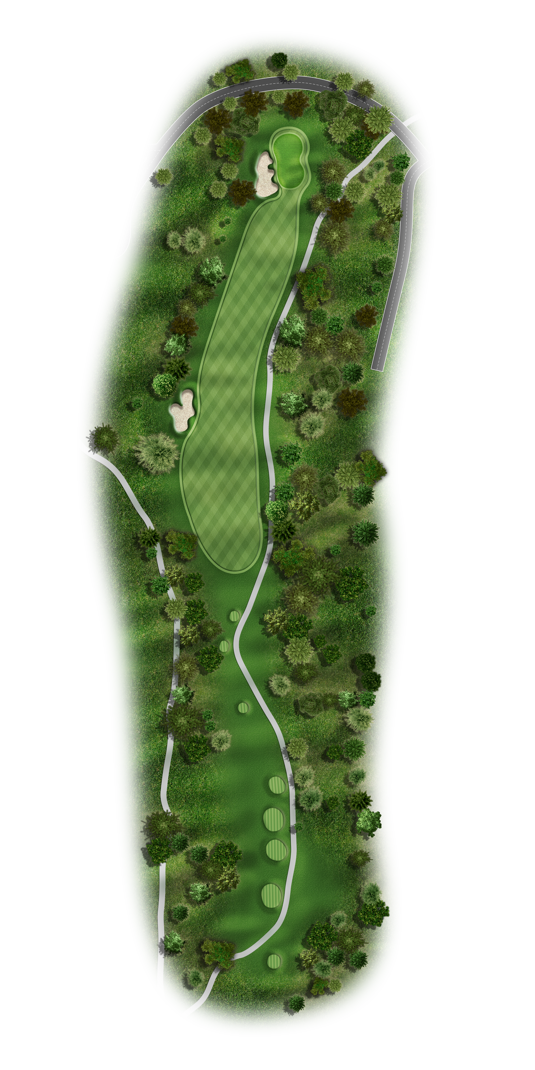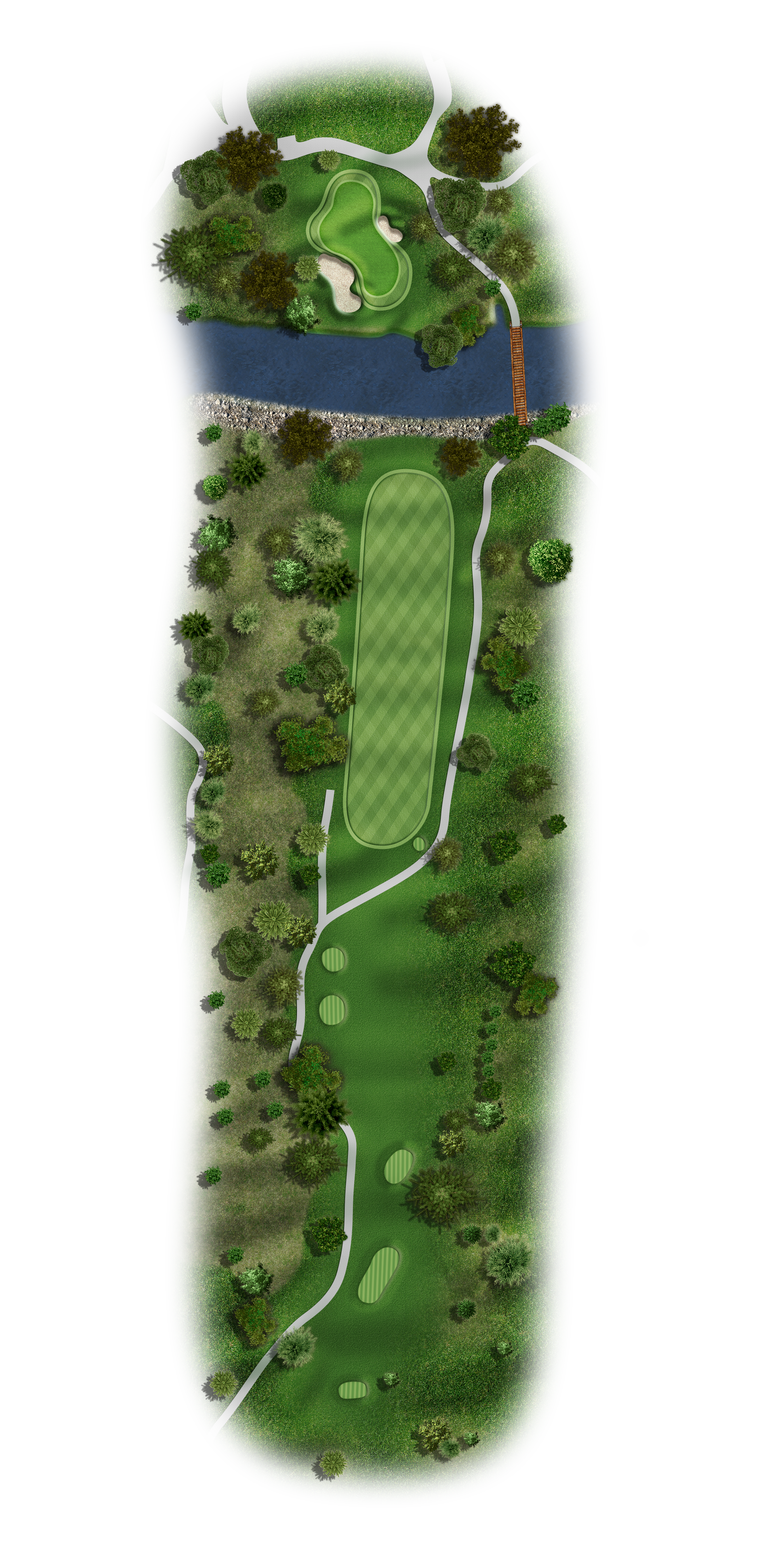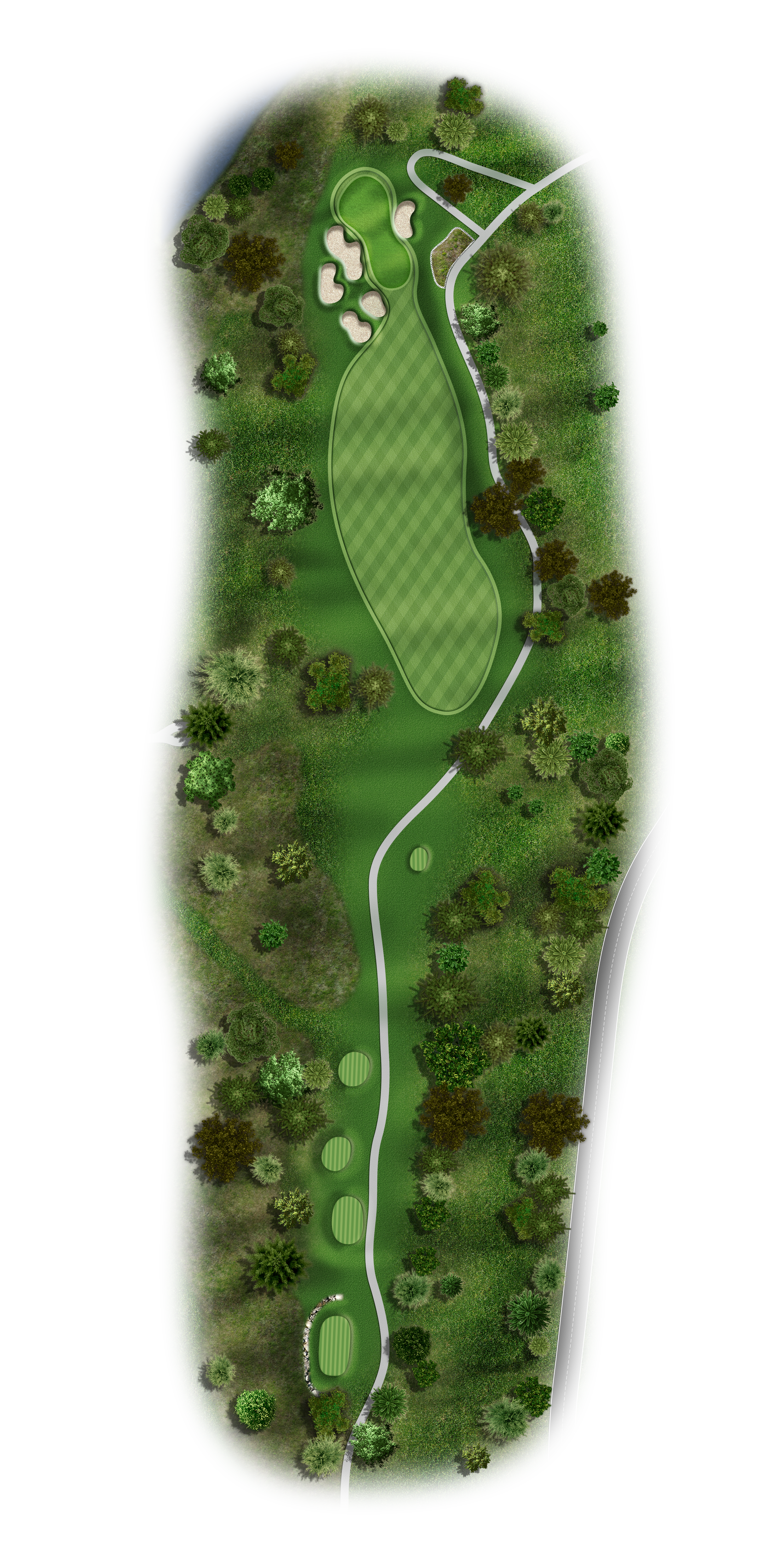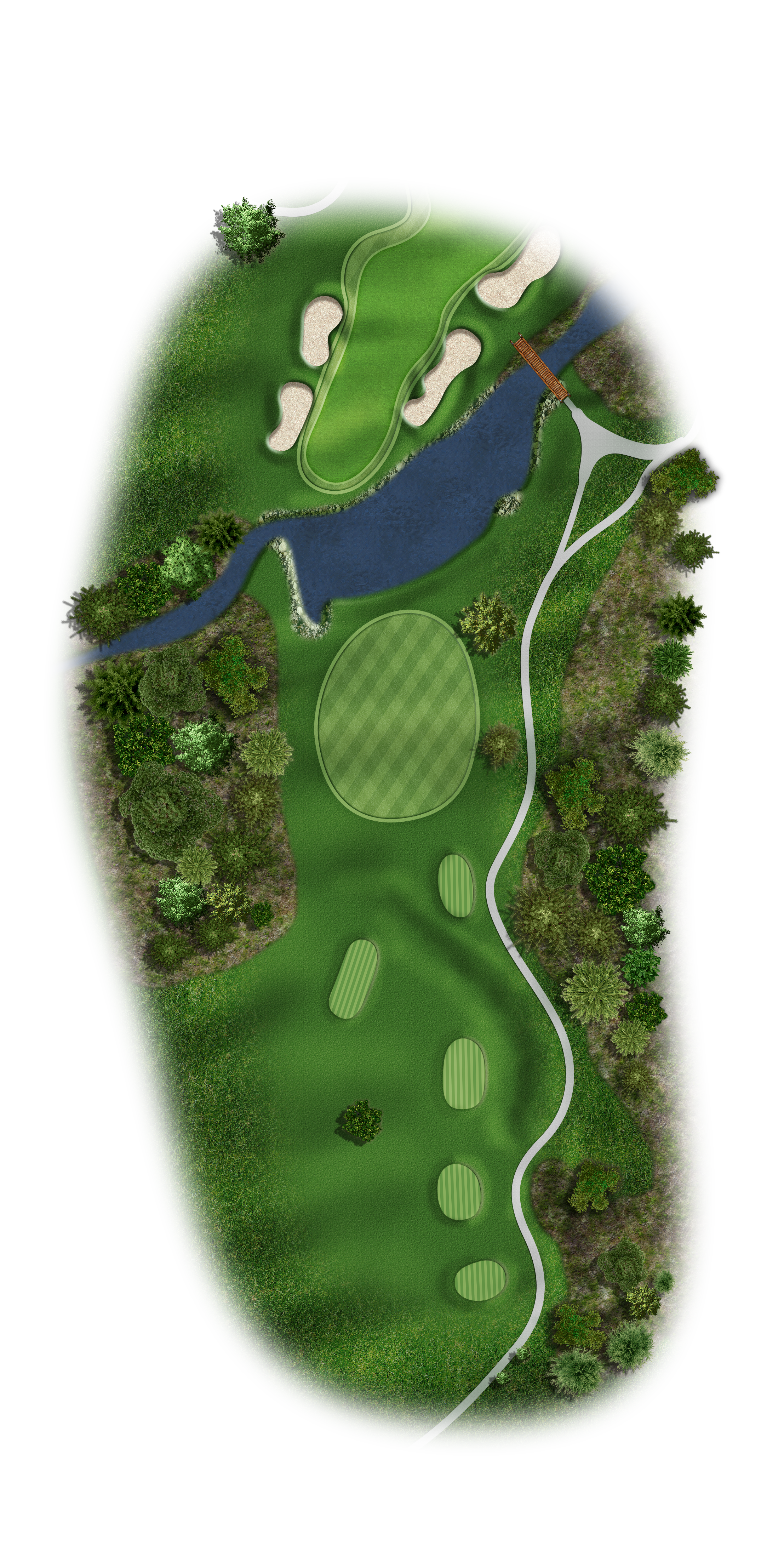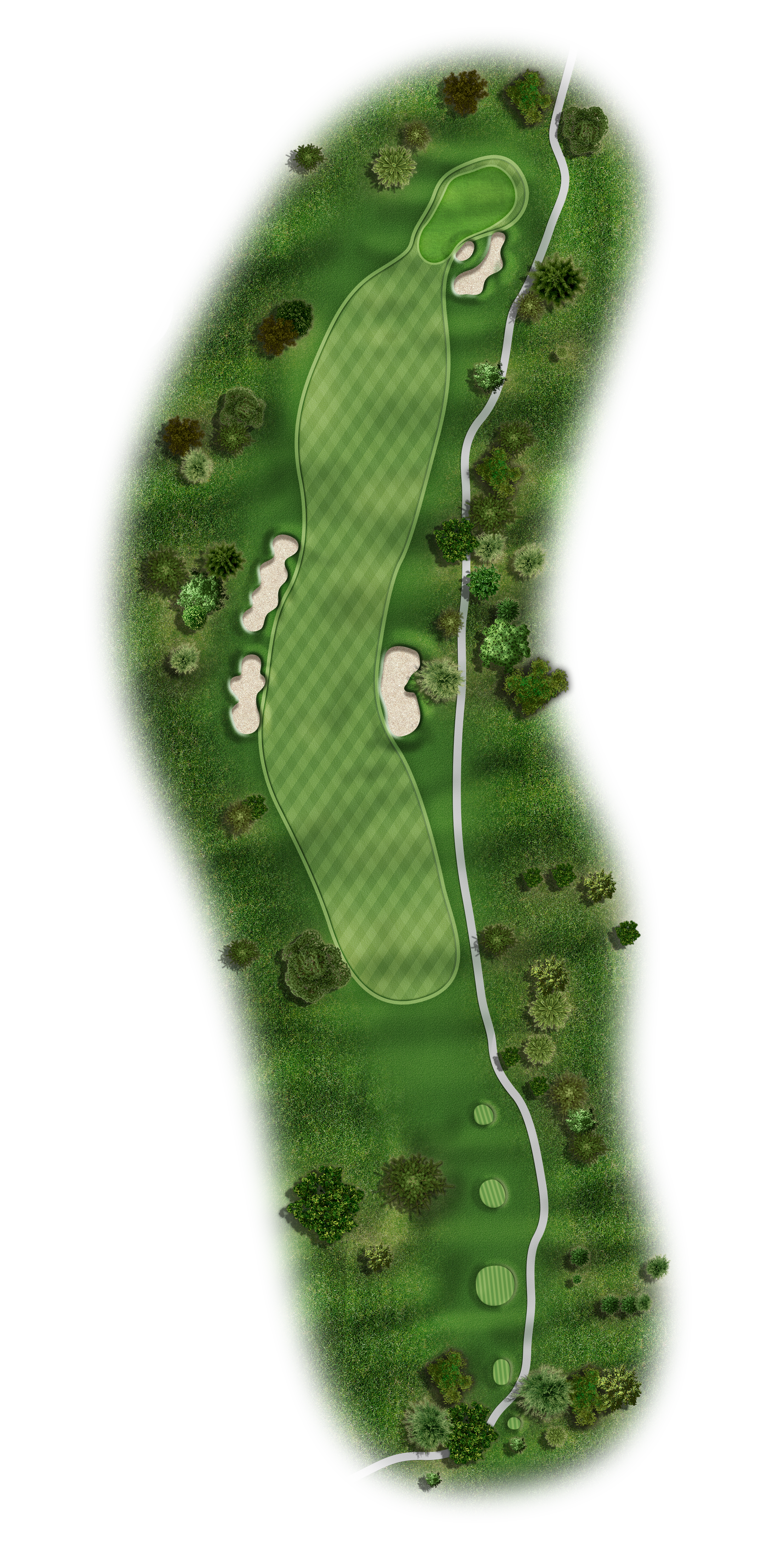 This Par 5 requires a drive in the middle of the fairway for a good layup or if you are going for it. Avoid the bunkers around this sloping green.
