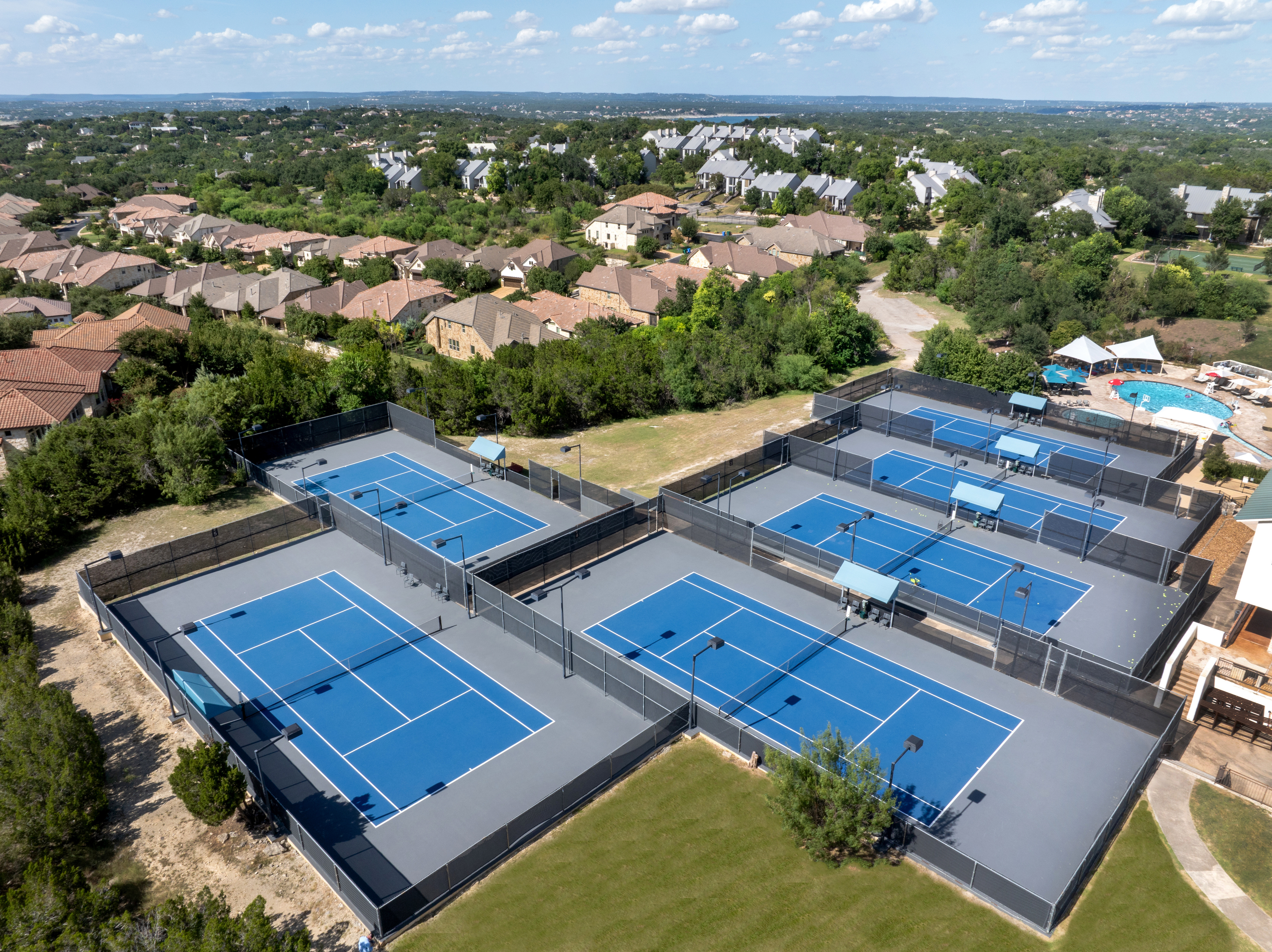 The Hills is a private golf and country club near Austin, Texas, offering a premier tennis experience in a scenic setting. The Hills tennis complex is designed for year round play and features 13 outdoor courts and two climate controlled indoor courts. Meticulously maintained surfaces, professional lighting, and a thoughtfully planned layout create an environment that supports everything from casual matches to competitive training.